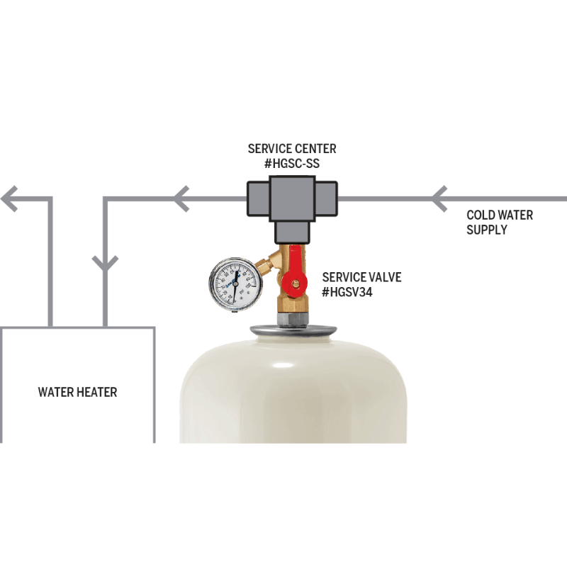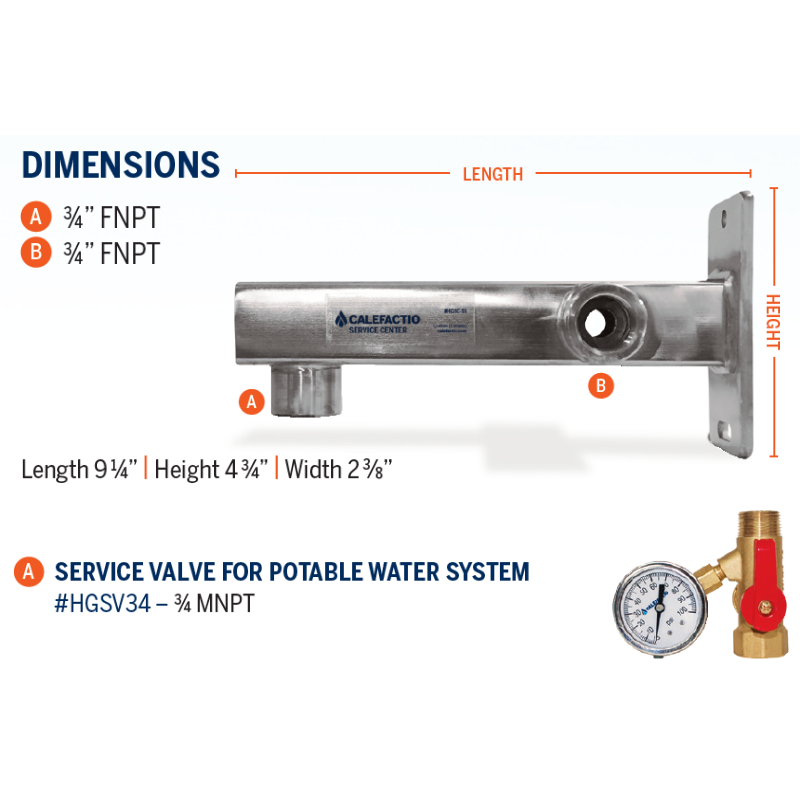 For a professional installation that allows to have the system status in the glimpse of an eye, choose Calefactio’s Service Kit in stainless steel for potable water systems. It saves time and money. It contains an expansion tank (#HGTE-5, HGTE-8, HGTE-12 and HGTE-25), a stainless steel service center (#HGSC-SS) and a service valve with a pressure gage (#HGSV34).