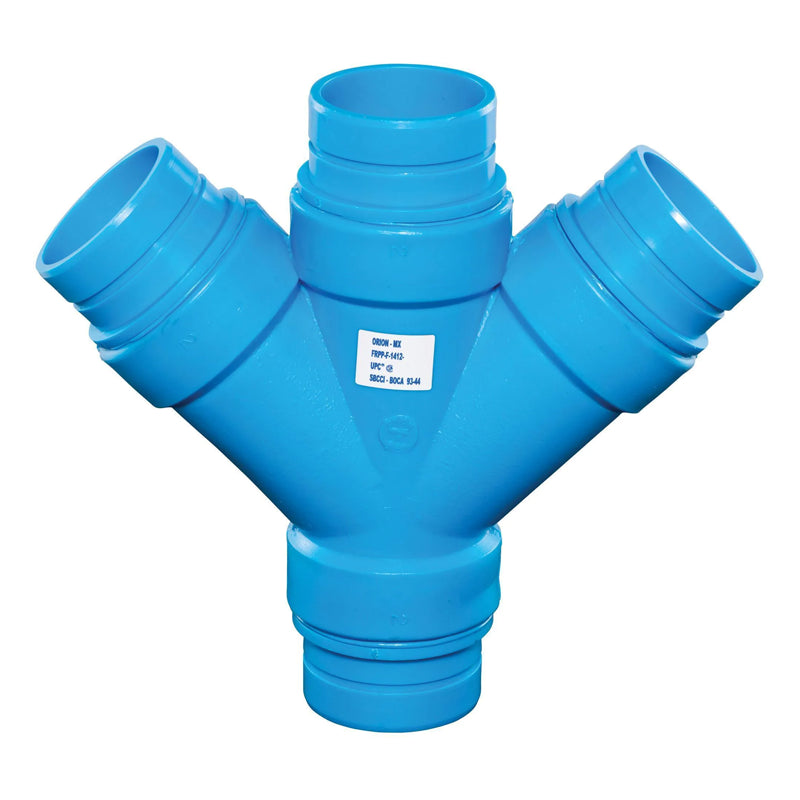 The ORION 710009 BLUELINE 1-1/2-inch MJ Double Wye is a highly efficient fitting designed to create multiple directional flow paths in chemical waste piping systems. Featuring a double wye configuration, this fitting allows fluids to branch off into two directions, making it perfect for complex piping layouts that require smooth transitions. Constructed from flame-retardant polypropylene (FRPP), the fitting provides superior chemical and fire resistance, ensuring durability and long-lasting performance in harsh environments.