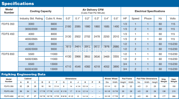 Phoenix UFD650A Evaporative Cooler Bottom Discharge Frigiking Series (U.L Listed) Warranty: Click Here.